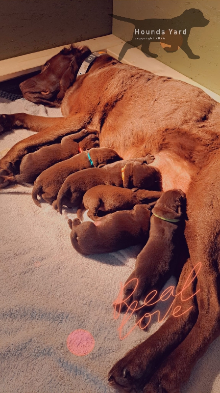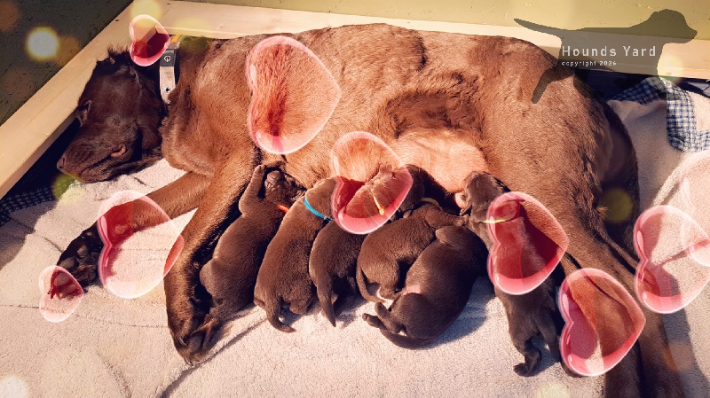 Mama Svea mit ihren 6 Tage alten Welpen